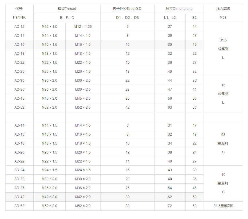 20511公制內螺紋24°錐O重系列