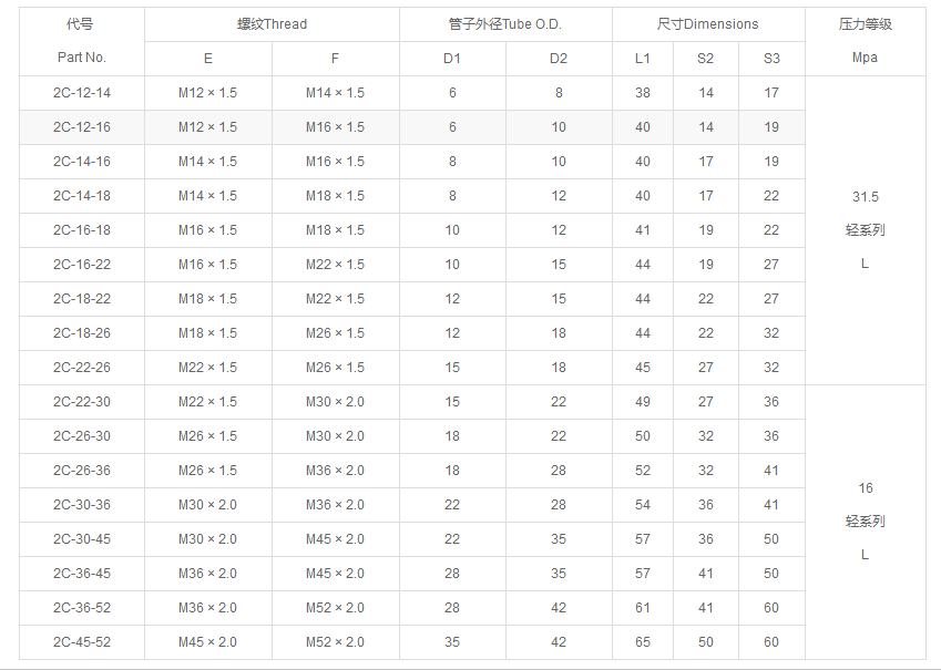 20611公制內螺紋60°外錐面系列