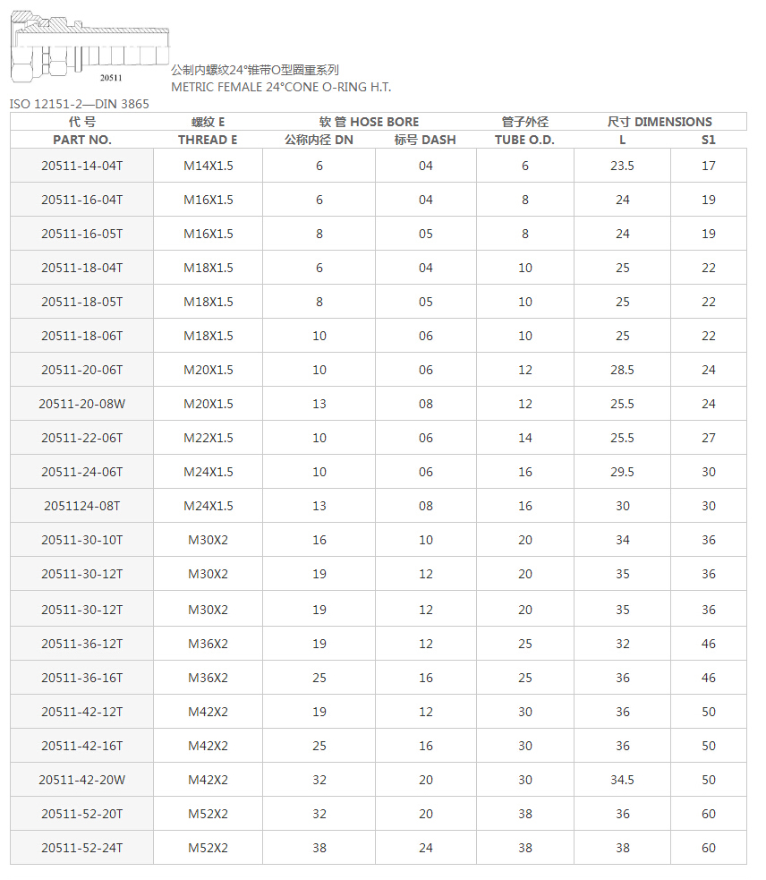 20511公制內(nèi)螺紋24°錐O重系列